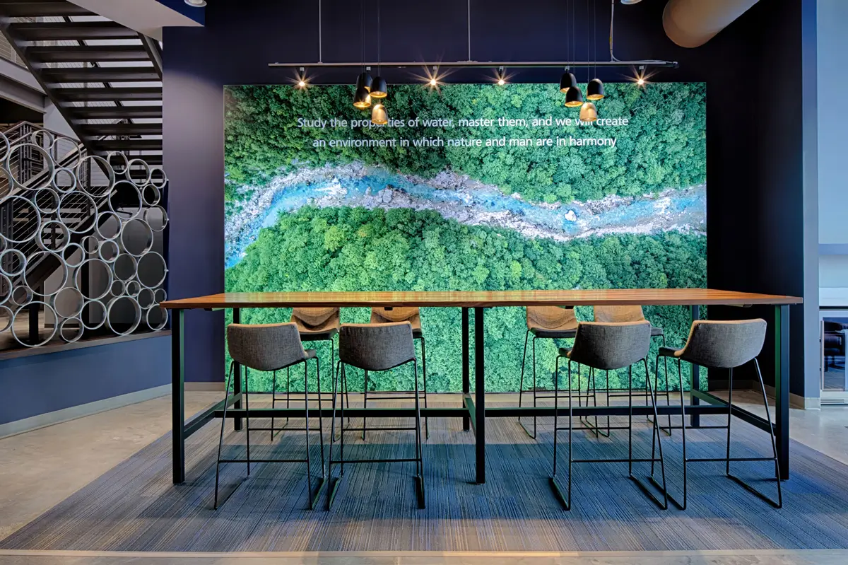 Fluid helped Kurita America eliminate dedicated offices without compromising workstation features or ergonomics. Key project goals focused on fostering communication and collaboration by giving employees a community space and re-thinking meeting rooms. The end goal was to create a workplace that exemplifies Kurita’s core values of Fairness, Transparency, Integrity, Safety, and Compatibility.