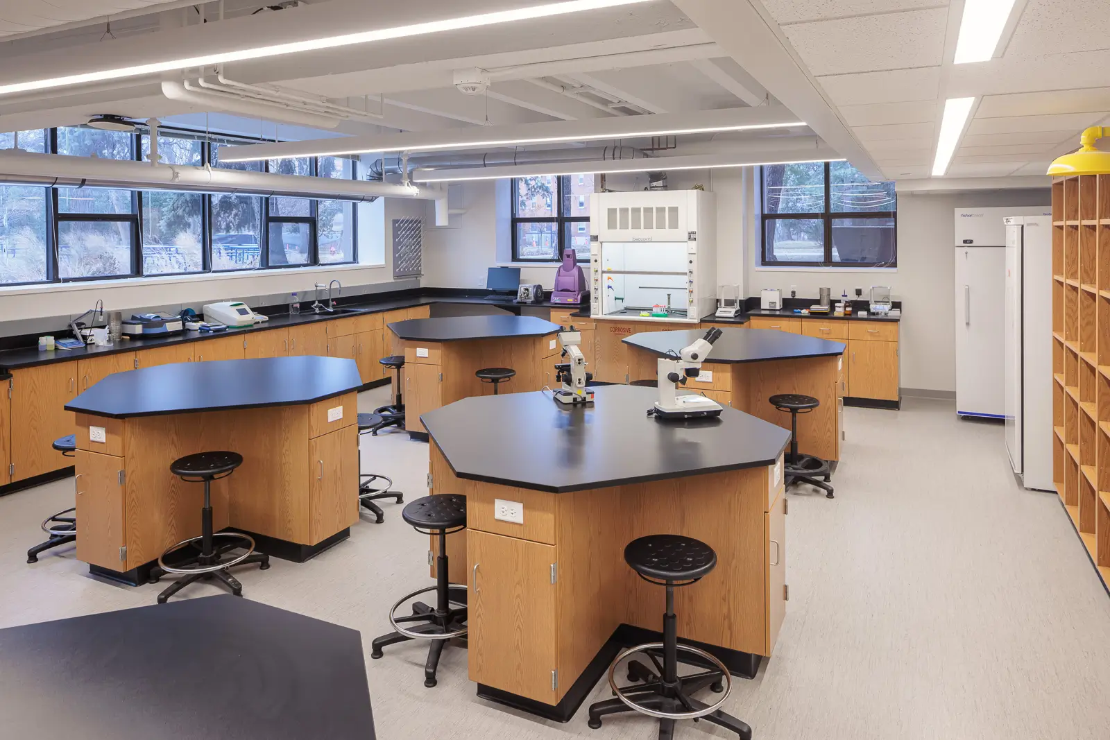 When St. Catherine University planned to evolve the learning environment with a new classroom facility, they sought a holistic furniture partner who would help make informed decisions while providing a range of services as they continue to advance their campus into the future. Fluid leveraged our in-house services as well as Haworth’s research and knowledge base to work in line with the design by BWBR. Solutions blend traditional and new elements to stay grounded in the university’s history while bringing new and innovative ways to engage students in the modern learning environment. The project scope included student lounge spaces, classrooms, labs, collaboration areas, and flex labs that integrate hybrid learning technologies.