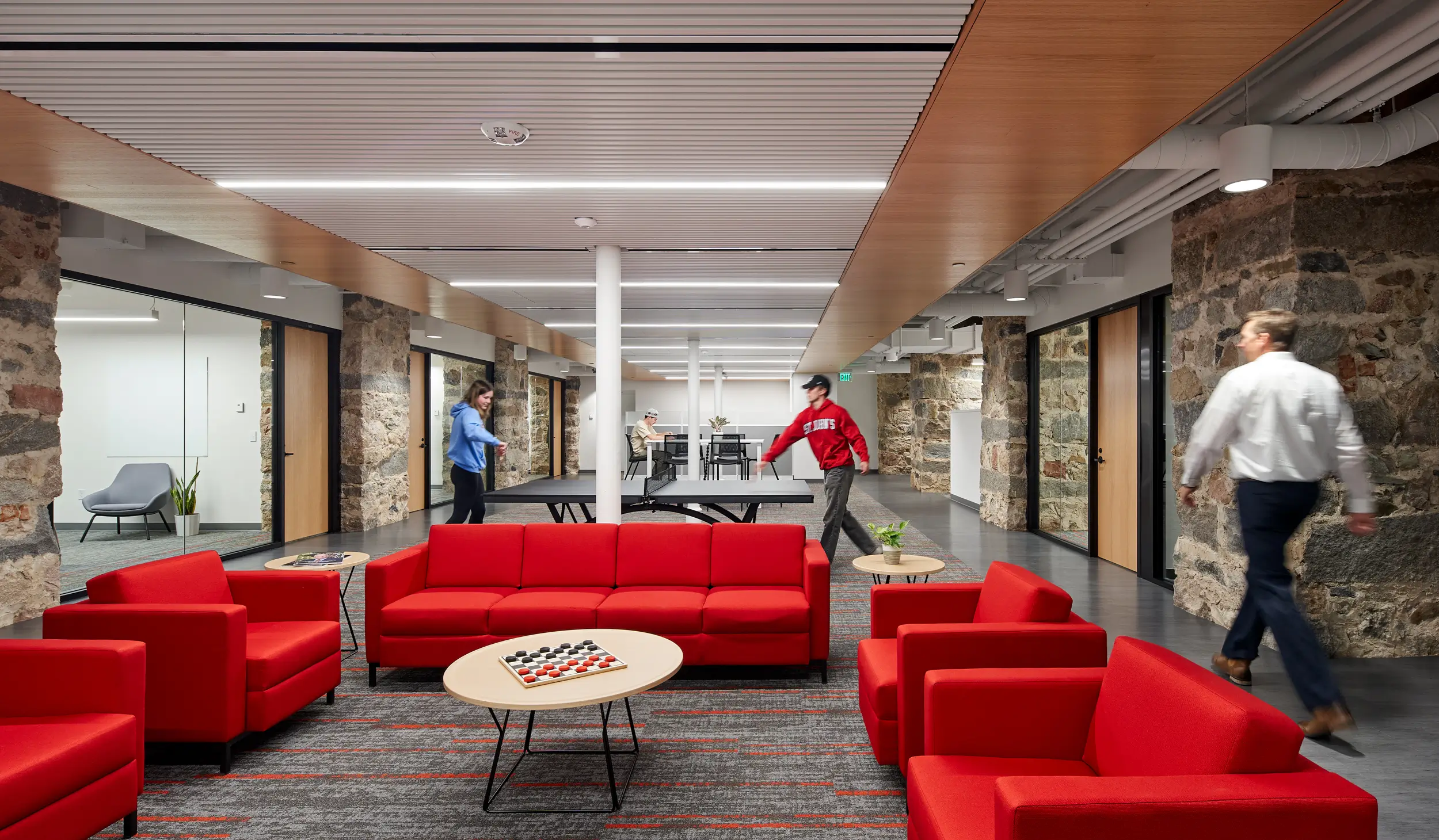 Part of a refresh of the historic Quadrangle building at the heart of St John’s campus, this project design by BWBR sought to update the space to reflect the needs of the modern campus while staying grounded in the building's history. Fluid provided furniture solutions that showcase the university's brand and allow for collaboration and focus to meet the needs of administration personnel. The project scope included private offices, conference & phone rooms, a waiting area, collaboration spaces, and a café.